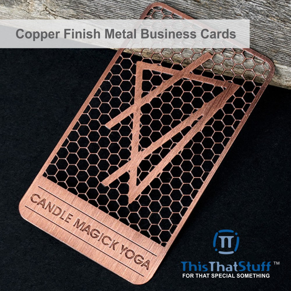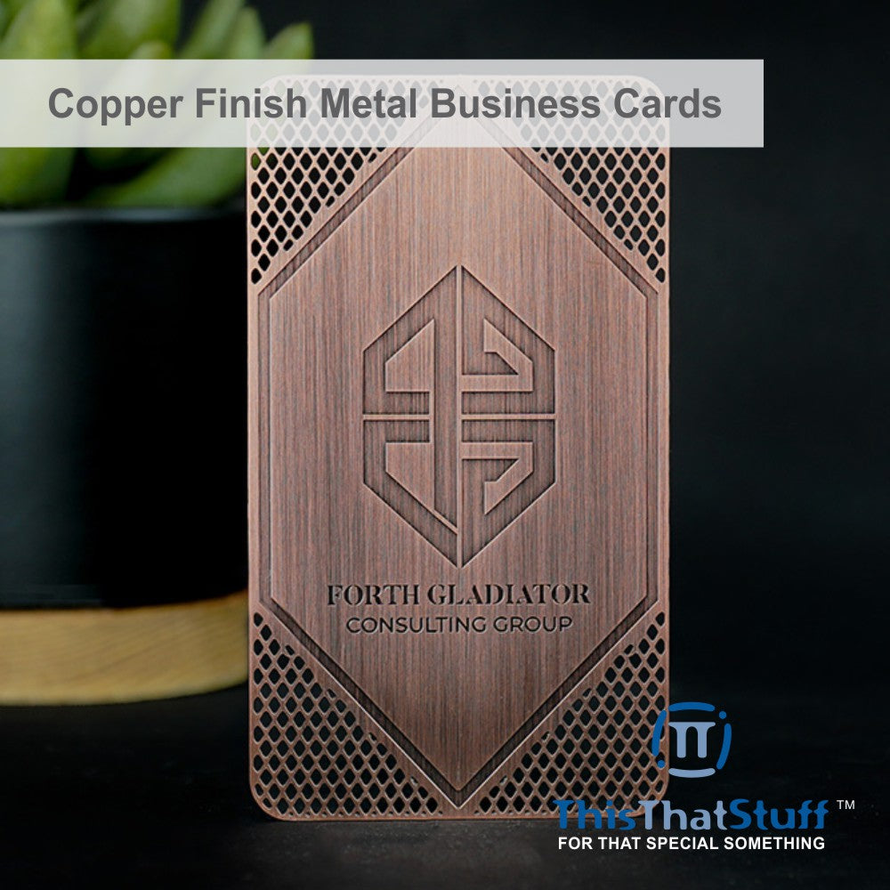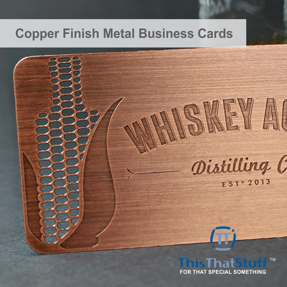 Rustic meets modern with our Copper Finish Metal Business Cards. Hand your clients metal cards that will impress and tell your brands story. Our metal cards are custom made-to-order with your logo and information - we'll even help you design them. If you’re looking for something unique and not too modern or bold, these copper finish cards are for you!